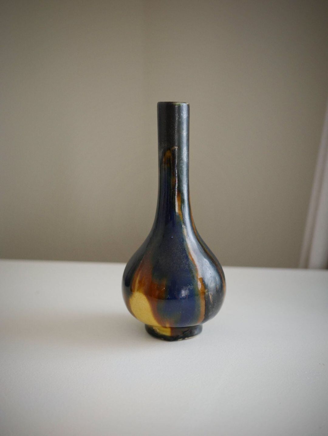 見る方向によって絵柄が変わり、落ち着いたカラーで使いやすい一輪挿しです。
